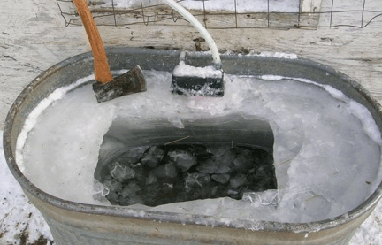Q. - I have your highest power 600 watt model and a big powerful battery at the full 13.8 volt charge but the water still freezes up by morning. What can I do? A - You must be in an extremely cold area. The best thing you can do is get a smaller stock tank to concentrate the heaters energy into a smaller body of water. Also try to bring hot water with you when you fill your stock tank. Many ranchers fill their truck-tank directly from their home hot water heater. This water is burning hot at first but by the time you get out to the stock yard the water will be nice and warm and will melt all of the ice in the tank on contact ! (No Chopping). Now connect your freshly charged battery to your stock tank heater and you should be able to make it for a full 24 hours, until your next visit.